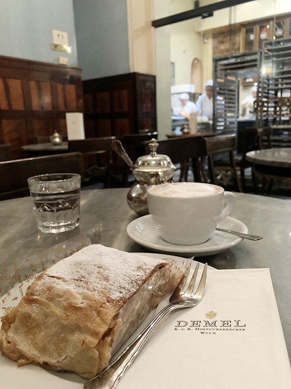 ウィーン初めての食事は、アプフェル・シュトゥリューデル!!