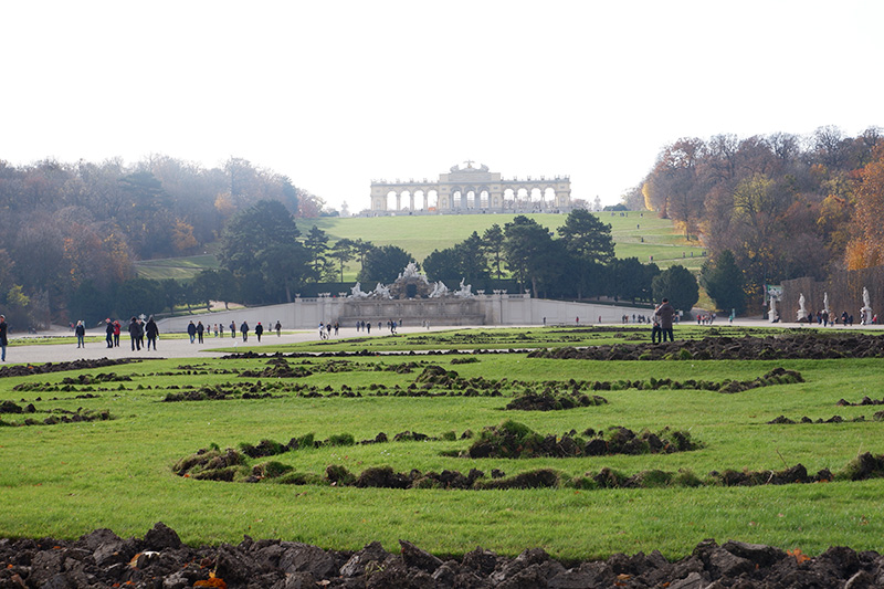 入り口となる宮殿からグロリエッテの一番上まで、歩いて20〜30分くらいでしょうか。ウィーンの街が遠くまで見渡せて、とても気持ちいいです。登ってよかった!